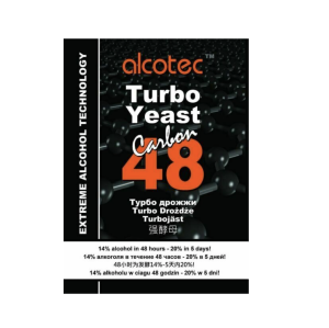 This is the yeast you have been looking for – High alcohol fermentation with activated carbon. Alcotec 48 Hour Carbon Turbo Yeast is an extra pure variant of the ever popular Alcotec 48 Hour Turbo Yeast.
